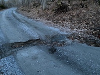After the annual meeting, the association did it's normal purchase of about $5K of 3/4 minus gravel that was spread along the road to fix up the damage caused by the spring melt and ice storm. It was then further manicured by one of the owners who works the road for us with his tractor and box blade. And the loggers have been good, I want to stress that, and the loggers got lucky with an extremely dry summer. But the trips in and out (out loaded is ~40 tons) took its toll on the road. Lots of compaction, lots of gravel shifted to the edge of the road, a few ditches pushed in, and areas of existing potholes worsened with new pot holes created.