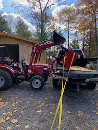 But as great and reliable as the old 9N is, and ten years on, it was time for a new one. We decided on a Mahindra 1626 HST for a number of reasons. Lots of internet research and YouTube reviews, what the local AG dealers carry, parts availability, and it didn't hurt that it's red. We have a theme at the cottage for red - doors, ATV, and now the new tractor.